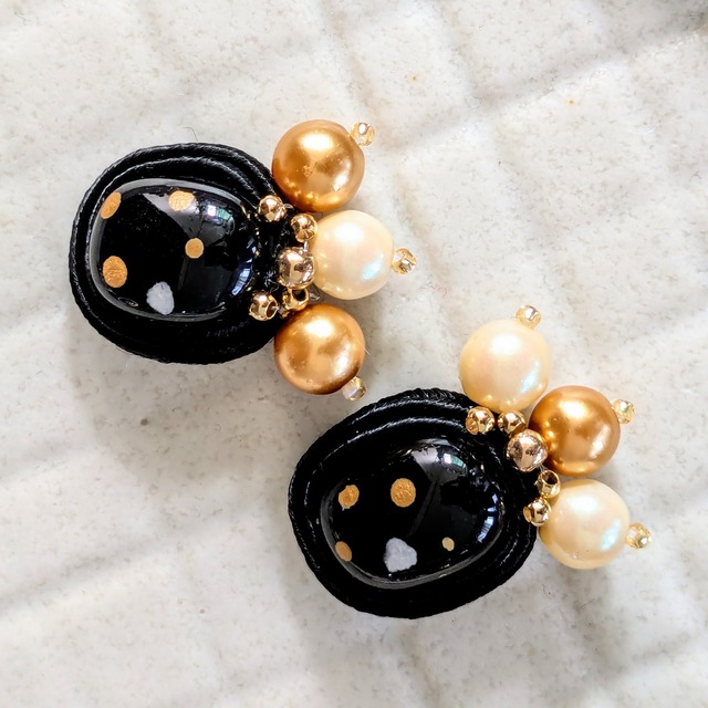 甘みのあるモチーフを ダスティーカラーでまとめました こちらはピアスのみのお作りです(^^)