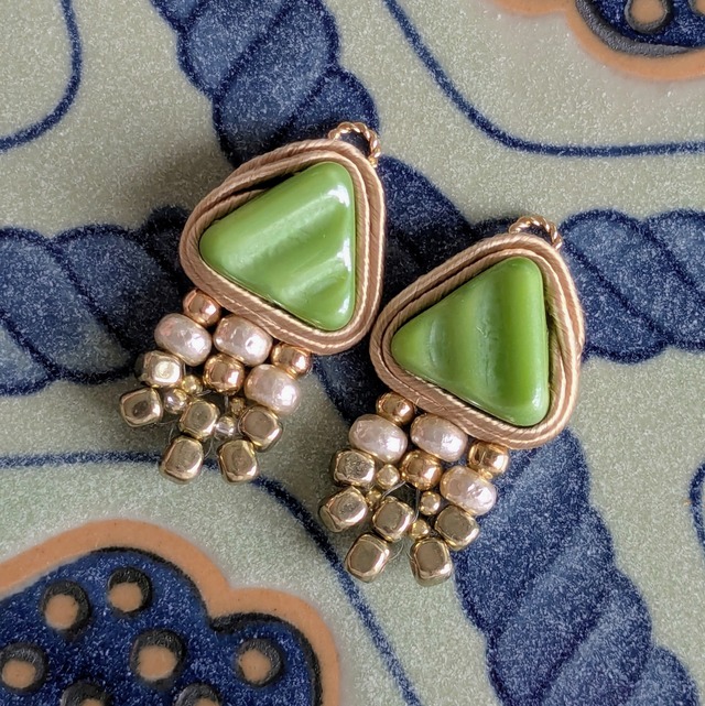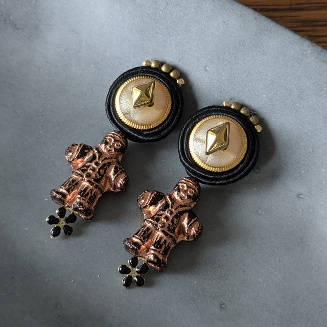 【予約】Afternoon ガラスボタンとビンテージチャームのイヤリング