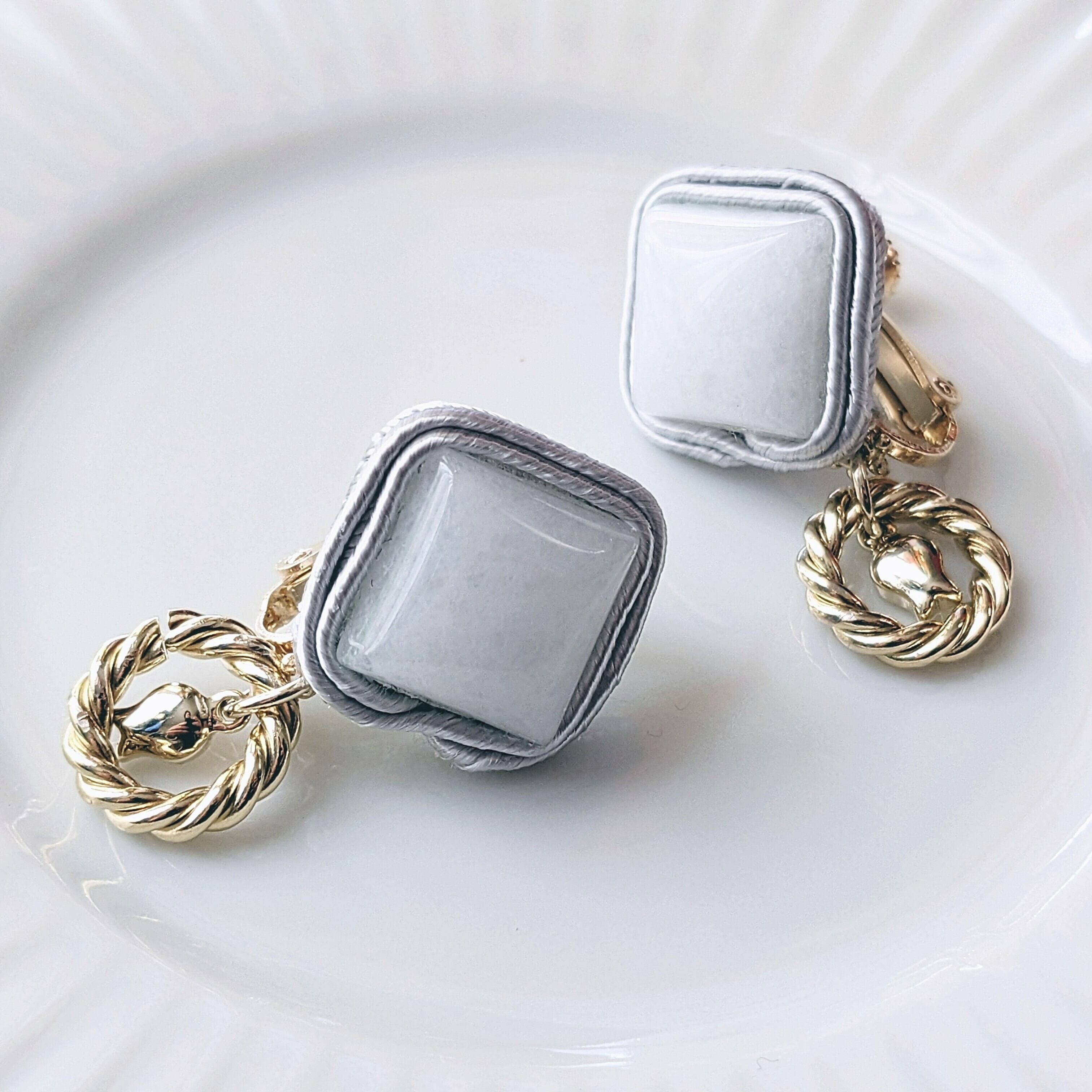 ◆白よりも白さを感じるのホワイトジェイド(白翡翠)を使用。輪の中に秘密の花園を。